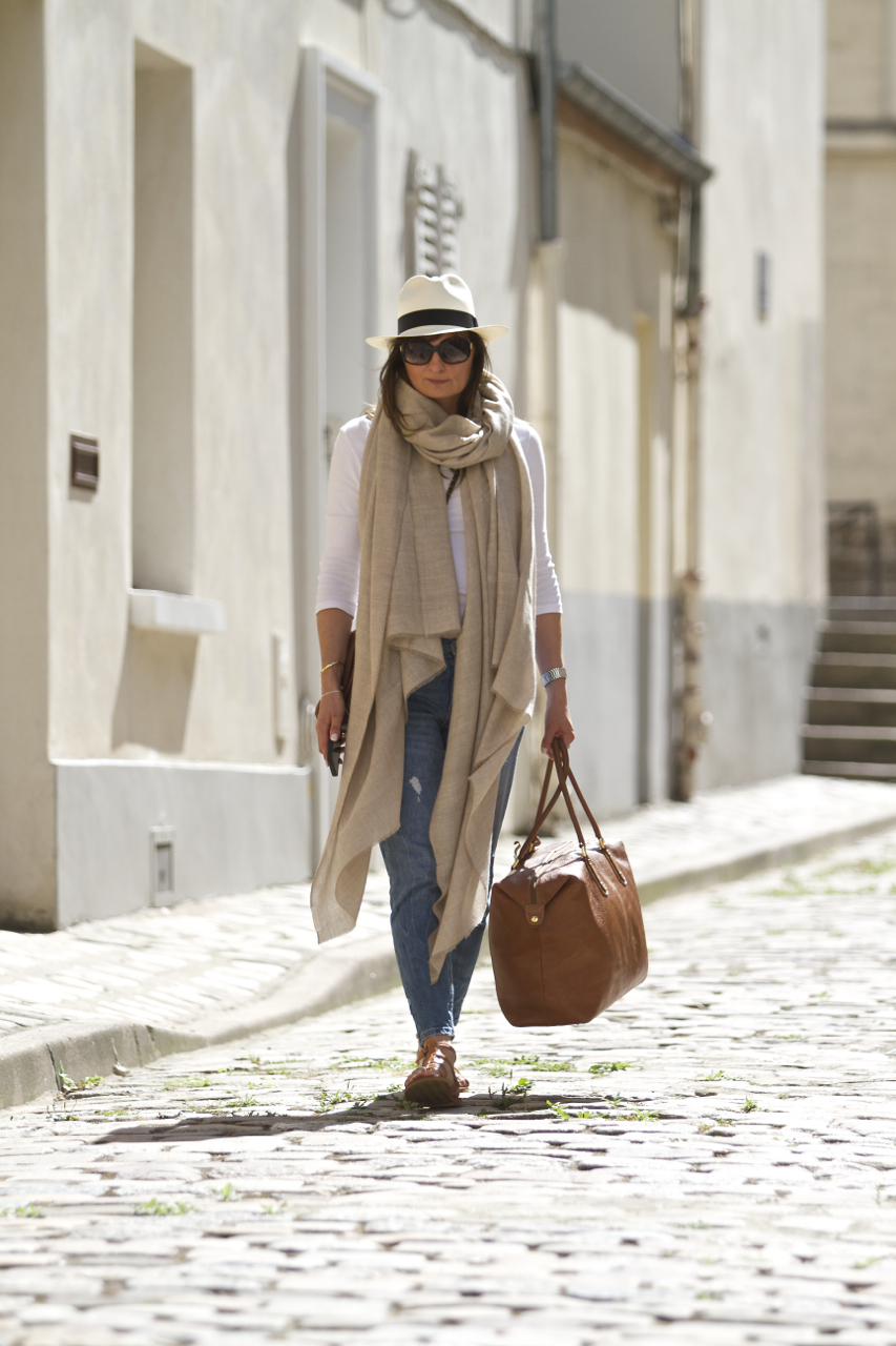 Mon accessoire préféré quand je voyage : le pashmina XXL ! Imaginez le confort douillet d’un plaid associé à la légèreté et la douceur incomparable du cachemire le plus fin au monde… Le pashmina XXL est sans nul doute la couverture la plus légère et la plus chaude qui puisse exister : 290g de pure douceur tissée à la main ! Bref, le doudou indispensable pour contrer les climatisations mal réglées de l’avion…