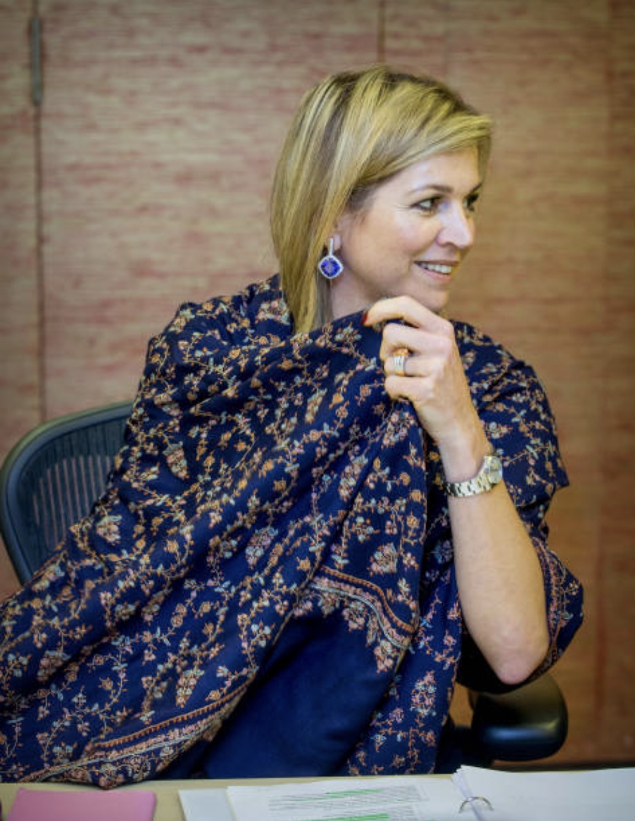 Maxima si è anche innamorata di pezzi esclusivi ricamati a mano, che sublima con la sua eleganza. Maxima dei Paesi Bassi è una magnifica ambasciatrice delle pashmine autentiche!