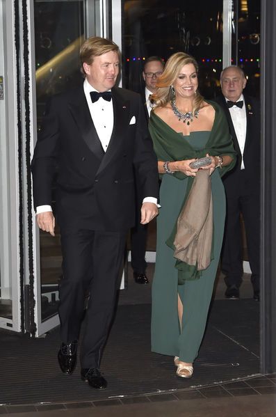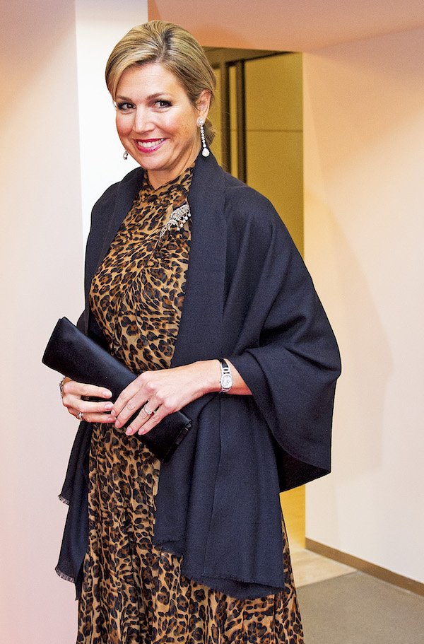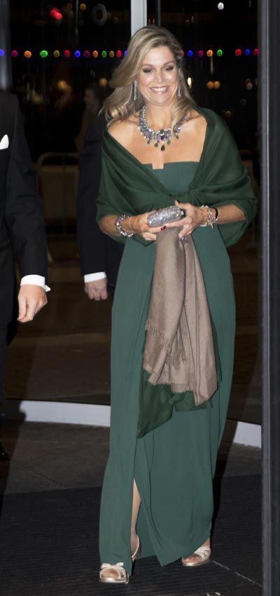 Sebbene il guardaroba di Maxima comprenda molti scialli da abbinare ai suoi abiti, è chiaro che le pashmine autentiche occupano un posto speciale nel suo cuore. Lo dimostra questo scialle di pashmina naturale, che porta con il suo abito di Valentino, e la stola di seta abbinata: è vero che la vera pashmina, così fine e morbida, è anche molto calda e quindi ideale per completare un outfit da sera che mette in mostra le spalle.